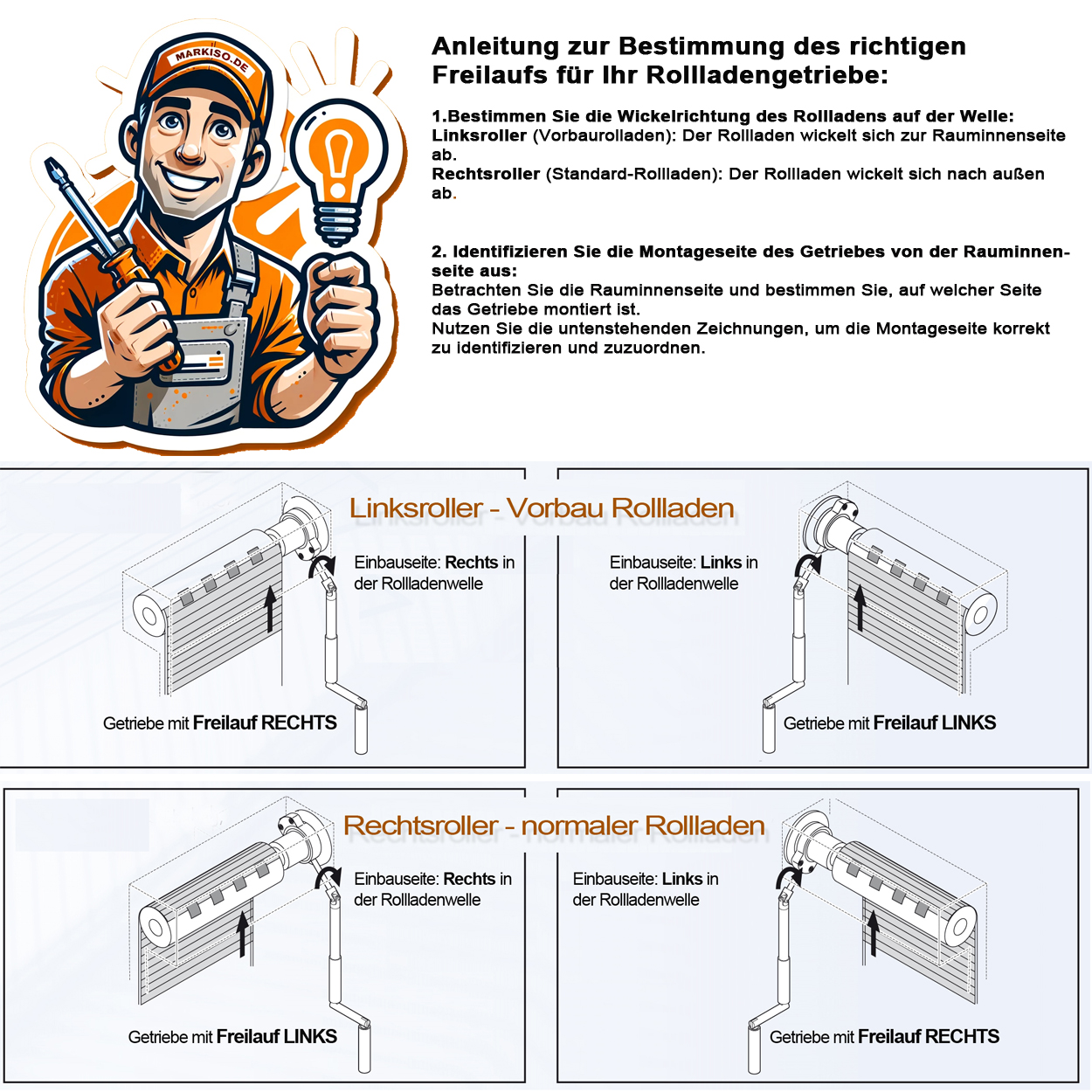 - Sicher und zuverlässig durch Freilauffunktion zur Vermeidung falscher Aufwicklung Links- oder Rechtslauf frei wählbar