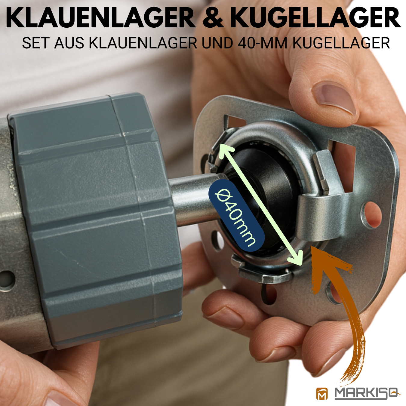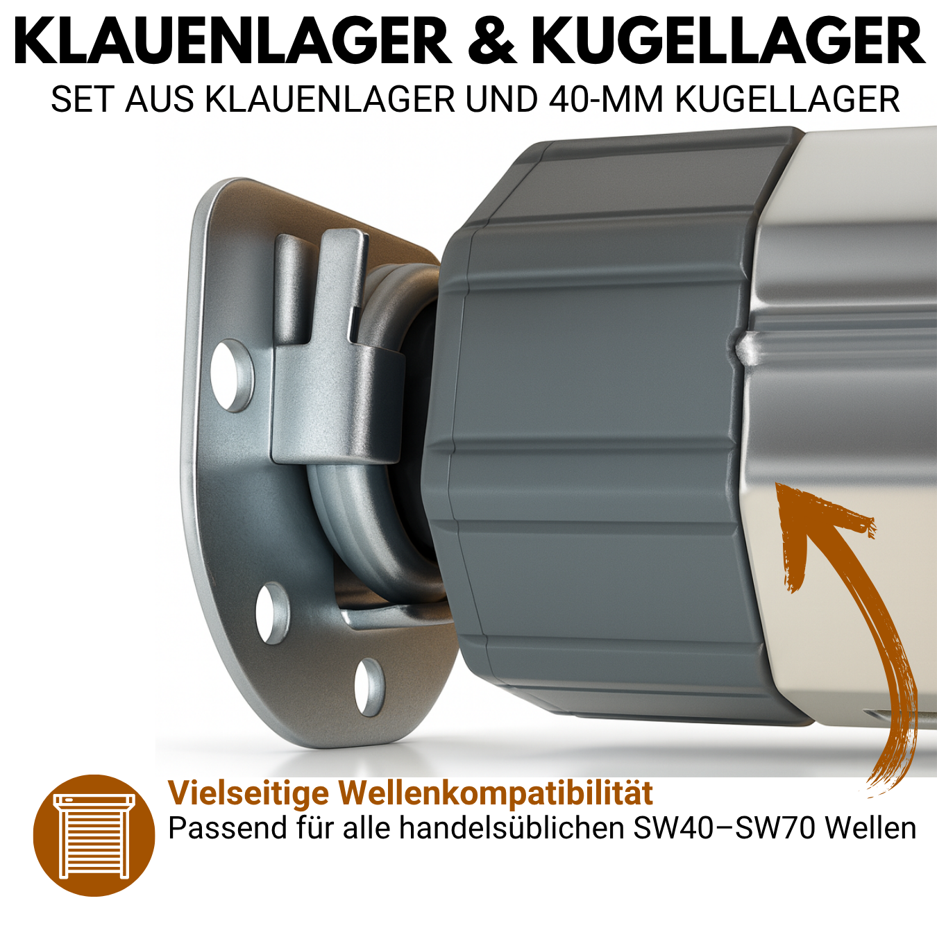 Durch die perfekte Abstimmung zwischen Klauenlager und 40-mm Kugellager ist dieses Set die optimale Wahl für jede professionelle Rollladenmontage oder Reparatur.