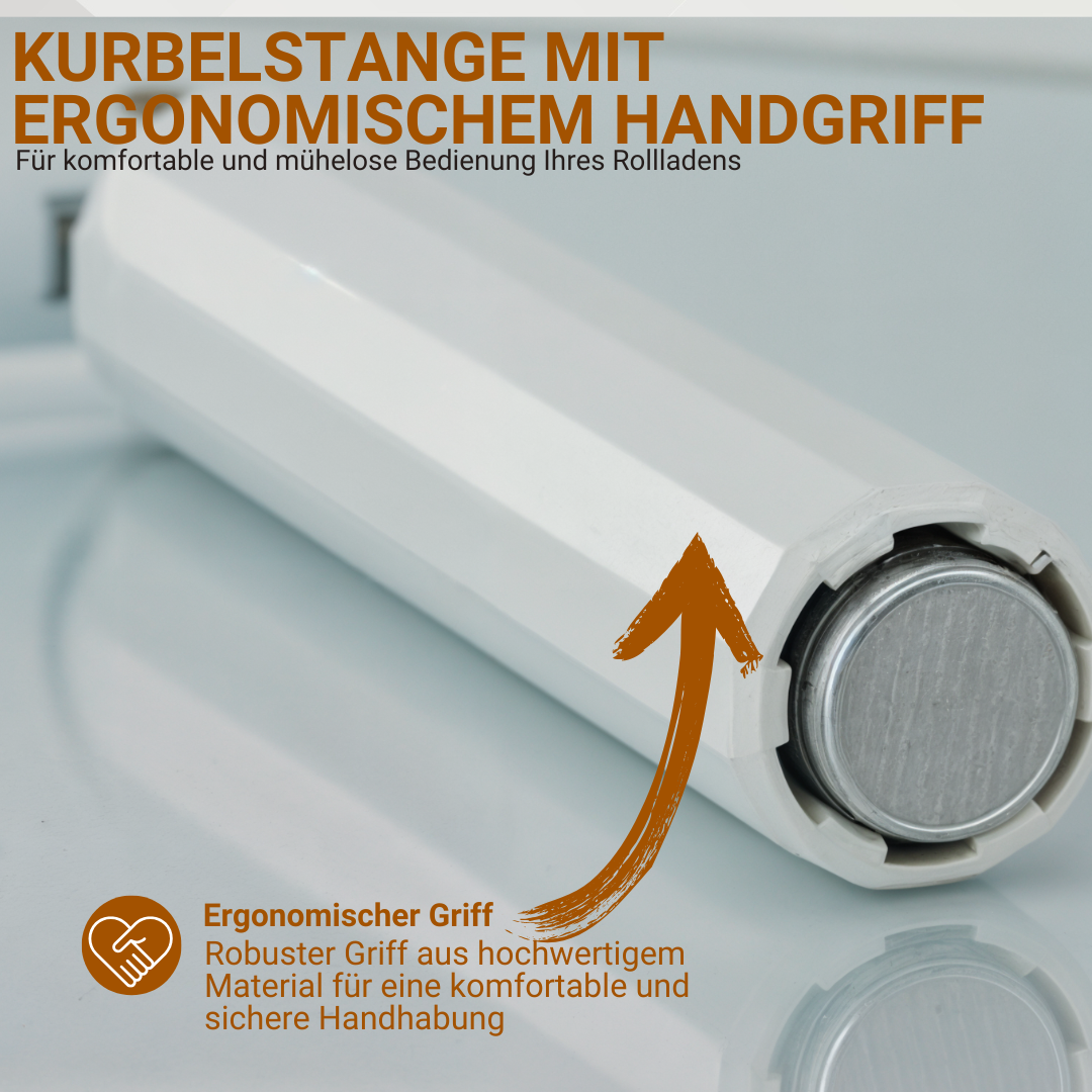 Dank ihres robusten Materials ist die Kurbelstange nicht nur rostfrei, sondern auch äußerst belastbar. Mit einer Länge von 120cm & 150cm (gestreckt) bietet sie die ideale Hebelwirkung für ein leichtgängiges Öffnen und Schließen Ihrer Rollläden.