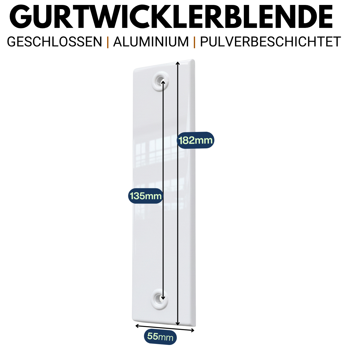 | Merkmale Gurtwicklerblenden: | Blenden geschlossen, Lochabstand 135mm, Lochabstand 160mm, Lochabstand 185mm, Weiß |