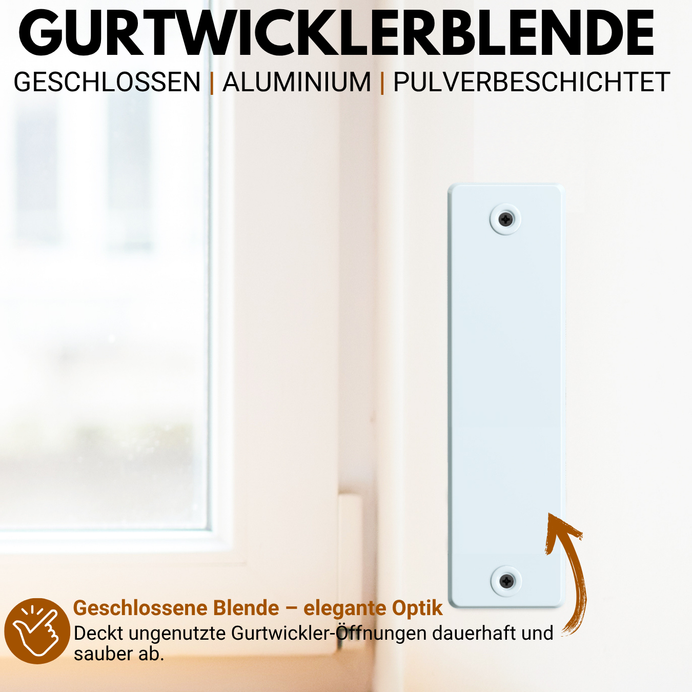 Die Rolladengurt-Abwickler Blende komplett geschlossen ist die ideale Lösung, um nach der Umrüstung auf elektrische Rollläden ein sauberes, modernes Finish zu erzielen. Dank hochwertiger Materialien, universeller Passform und unkomplizierter Montage überzeugt sie sowohl optisch als auch funktional.