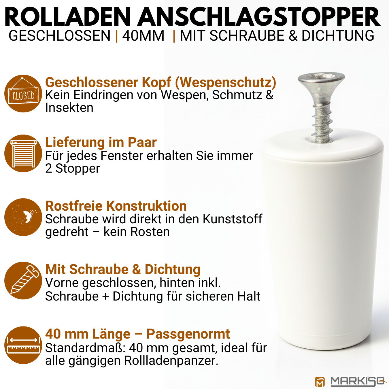 Rollladenstopper geschlossen – 40 mm | Mit Schraube & Dichtung | Wespenschutz