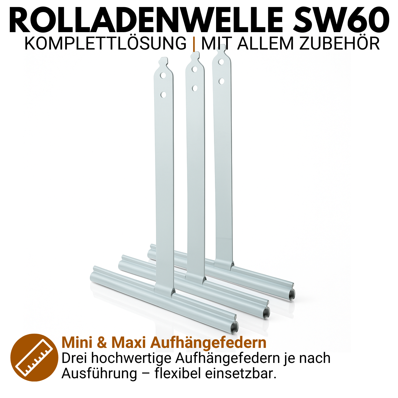 Rollladenwelle SW60 Komplettset – Stahlwelle mit Lager, Walzenkapsel & Aufhängefedern