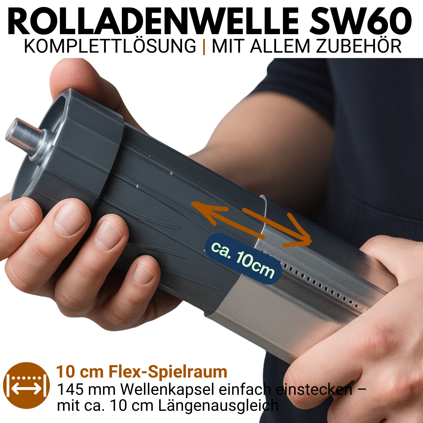 Ob Sie einen bestehenden Rollladen modernisieren oder einen Motor nachrüsten möchten – das SW60 Komplettset ist die perfekte Lösung. Es ist kompatibel mit allen handelsüblichen Rollladenmotoren sowie gängigen Aufhänge- und Lagersystemen.