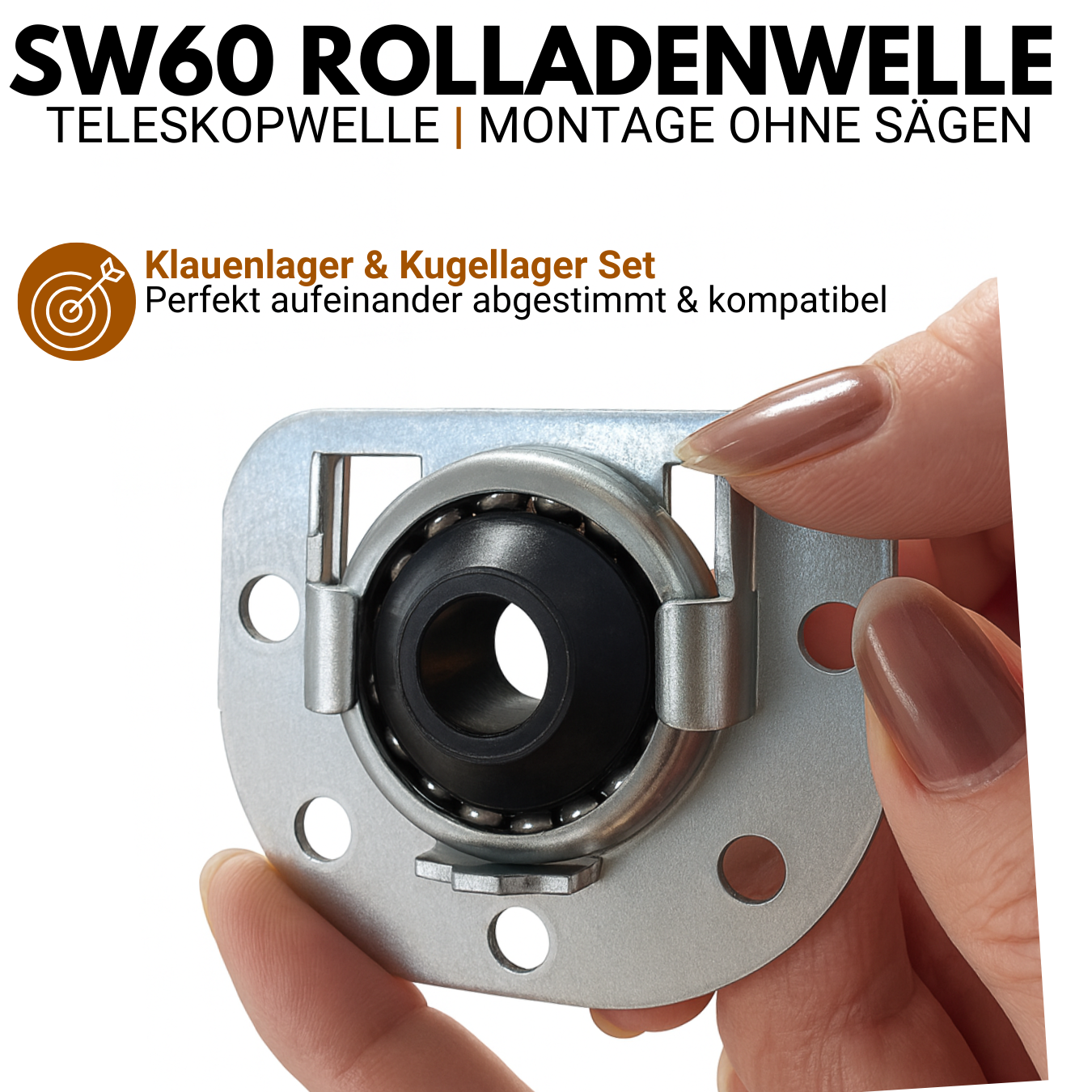 Rollladenwelle SW60 Teleskopwelle Set – Verstellbare Achtkantwelle für schnelle & saubere Montage